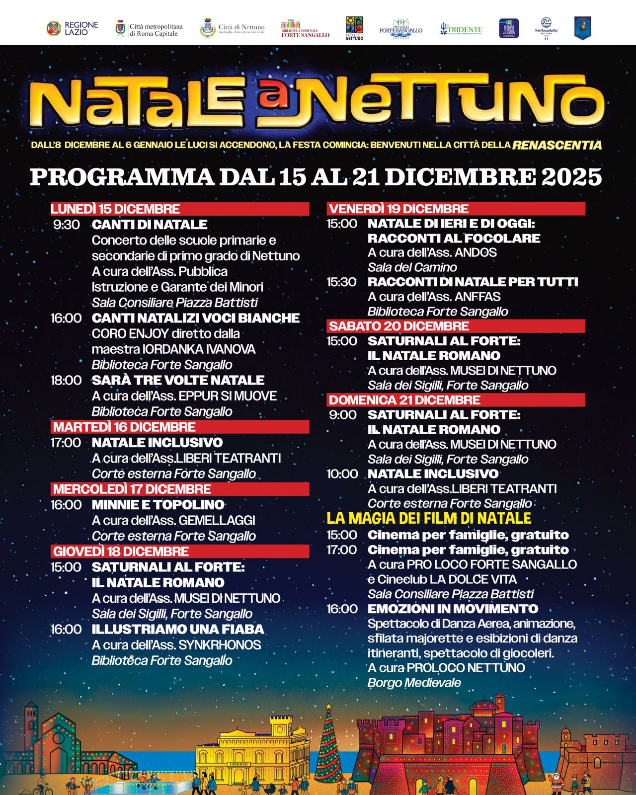 Una programmazione ricchissima per tutti i gusti e tutte le età per passare le Feste di Natale insieme a Nettuno.