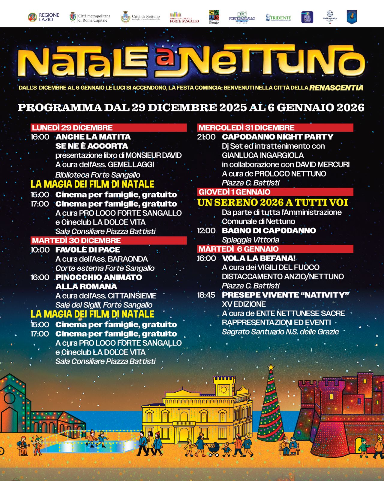 Una programmazione ricchissima per tutti i gusti e tutte le età per passare le Feste di Natale insieme a Nettuno.