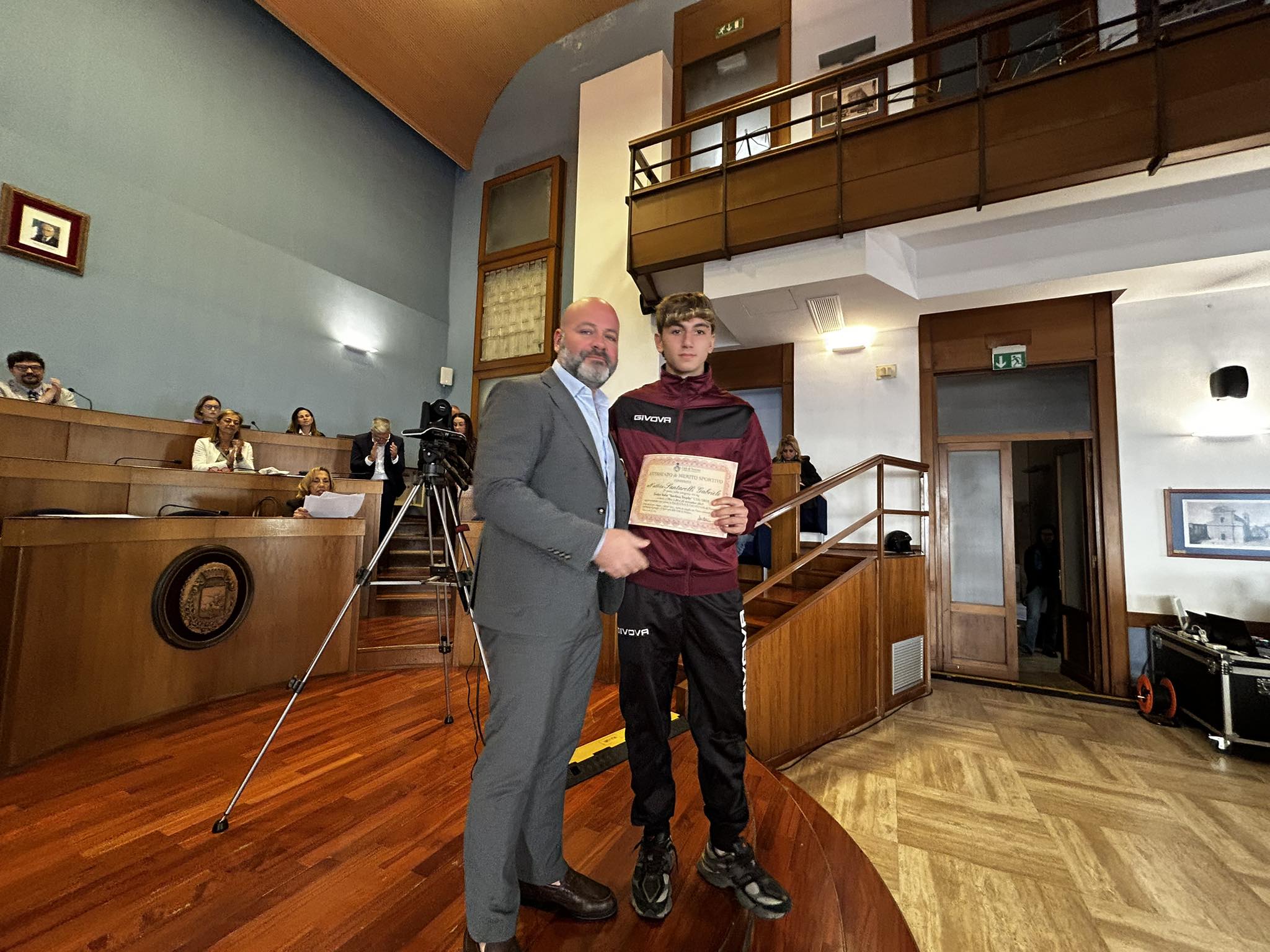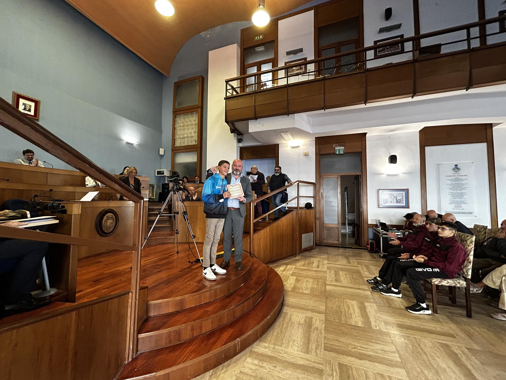 Il Sindaco ha premiato Alessandro Bianchi, Campione regionale di Triathlon Lazio 2025 nella categoria ragazzi, ha premiato Enrico Pisciarelli, 1° Classificato del circuito interregionale di Triathlon Italia centro 2025 nella categoria Ragazzi. Il giovanissimo è risultato anche secondo la Campionato regionale Triathlon Lazio ed infine ha premiato Valerio Di Magno, 3° classificato nel Campionato regionale Triathlon Lazio 2025 nella categoria Esordienti.